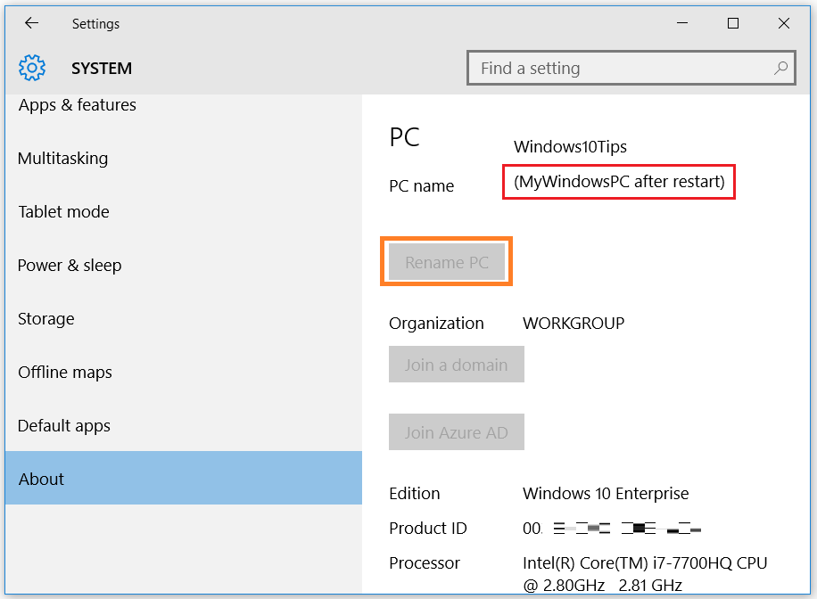 Right click on the start button and select system from the context menu. Users do have the option to rename their computer on windows 10. The quickest way to find out your computer name is to press windows key pausebreak.